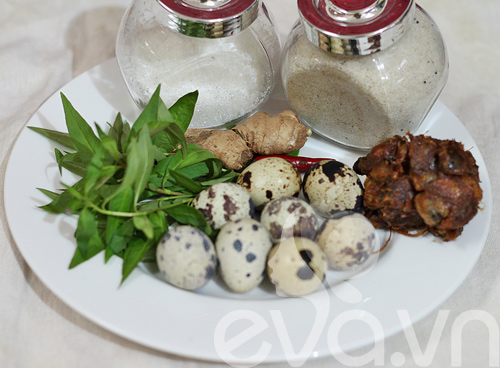 - 15 quả trứng cút lộn- 2 thìa vắt me- Gừng, lá răm, ớt, lạc rang (nếu thích)- Gia vị, đường.