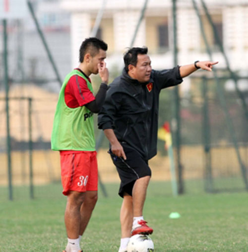 HLV Hoàng Văn Phúc (trái) dự định sẽ trao nhiều cơ hội ra sân cho các cầu thủ thuộc lứa U23 nếu ông tiếp tục được tin dùng. Ảnh: Minh Hoàng